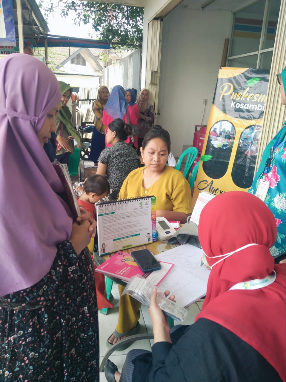 Jumat, 25 Juli 2025. Dalam rangka meningkatkan akses pelayanan kesehatan ibu dan anak, Puskesmas Kosambi membuka Gerai KIA ( Kesehatan Ibu dan Anak di Kelurahan Dadap. Kegiatan yang dilakukan di Gerai KIA meliputi pemberian informasi, edukasi dan konseling kepada masyarakat khususnya seputar kesehatan keluarga, mulai dari usia remaja, ibu hamil, ibu balita, hingga pasangan usia subur. di Gerai KIA juga dilakukan pemeriksaan kesehatan dasar sesuai usia terutama Kesehatan Ibu dan Anak.